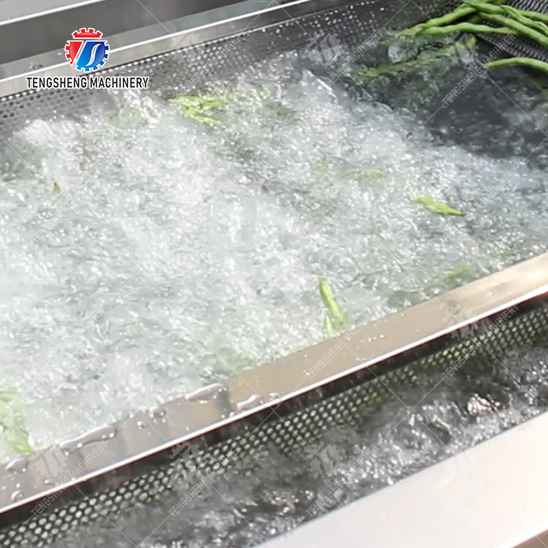 야채와 과일 버블이 드라이링 생산 라인을 씻고 진동시킵니다